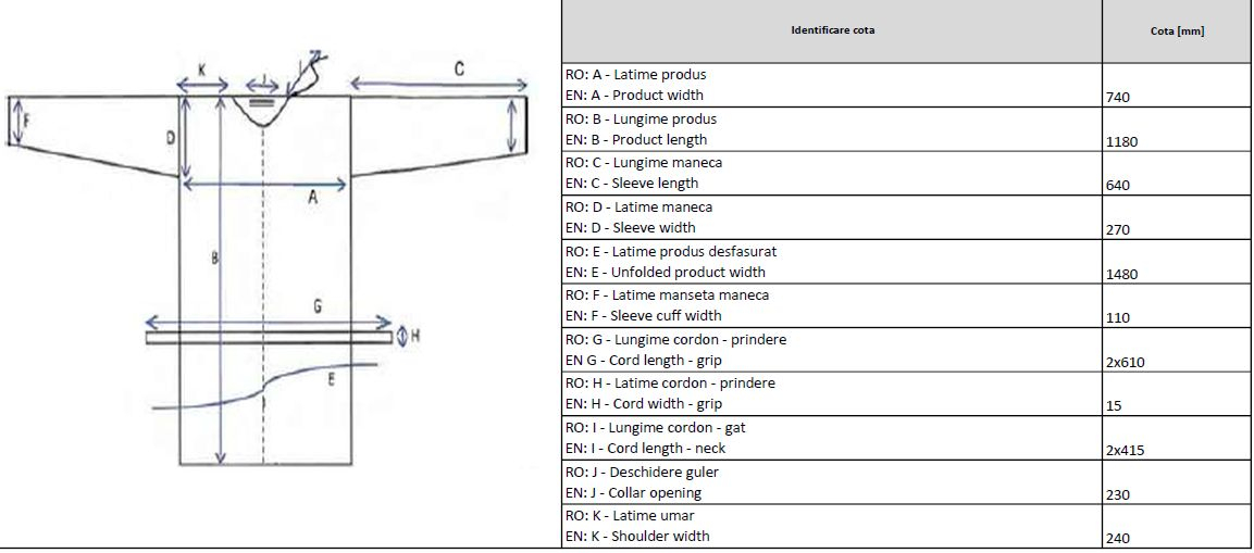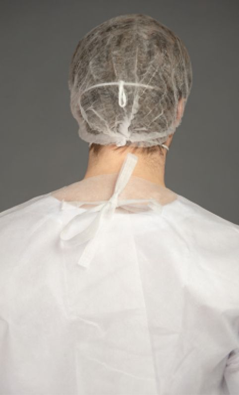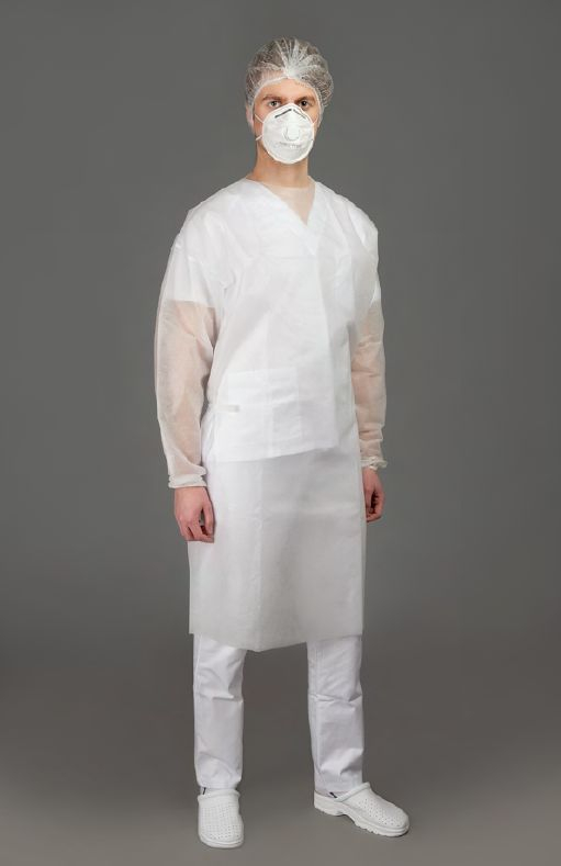 • Fabricat din material nețesut din polipropilenă • De unică folosință • Cu legături la talie și la gât pentru o fixare corectă a produsului • Rezistent la rupere